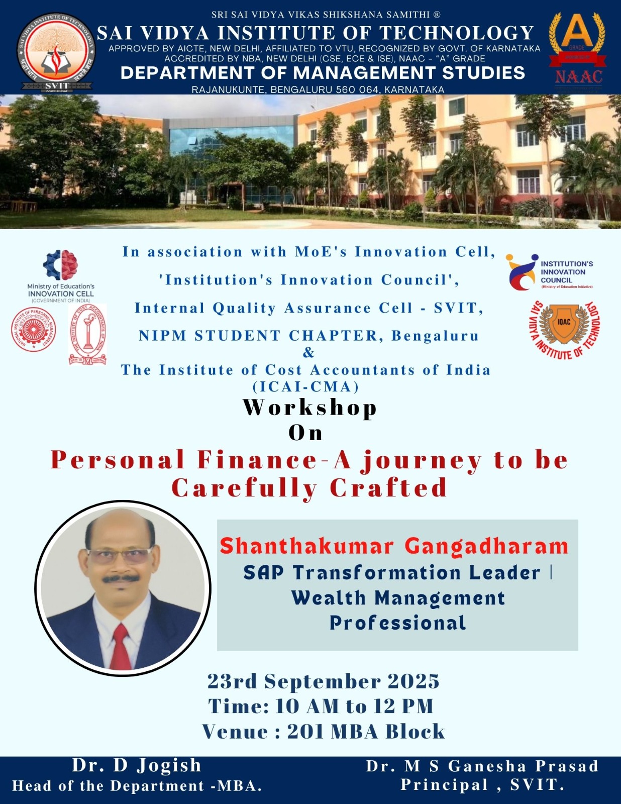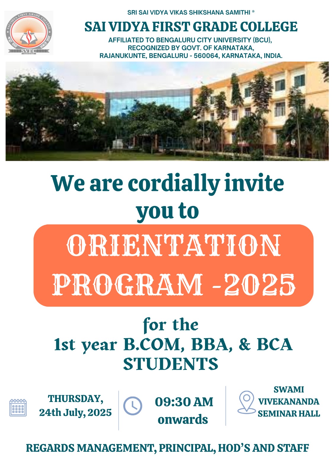 Develop professionals well equipped to lead with state-of-the-art Management skills through innovative ideas and human concern.