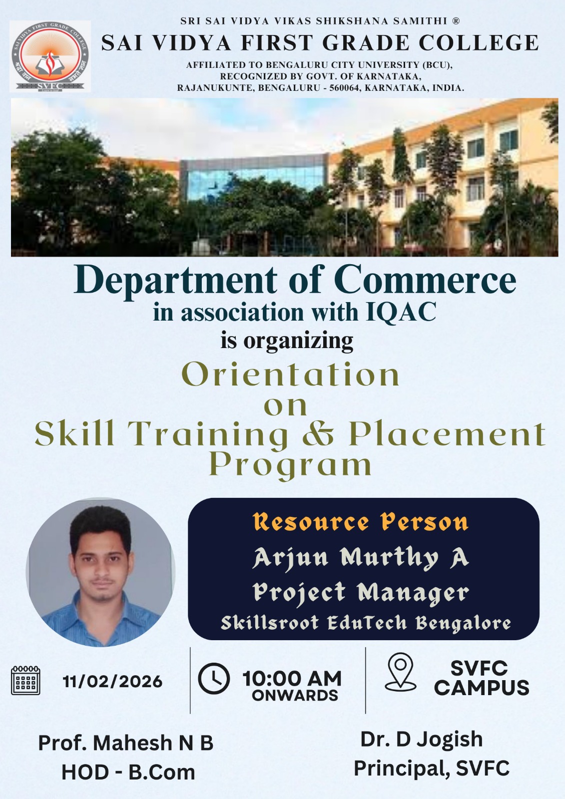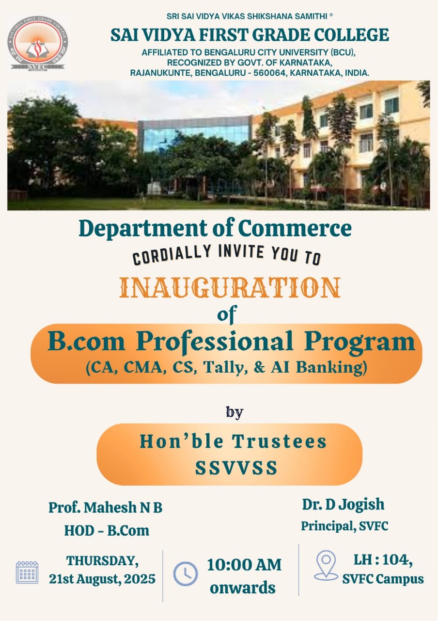 The B.Com department offers a placement training programme for final-year students, which is led by industry specialists and aimed at assisting students in obtaining positions in leading businesses.