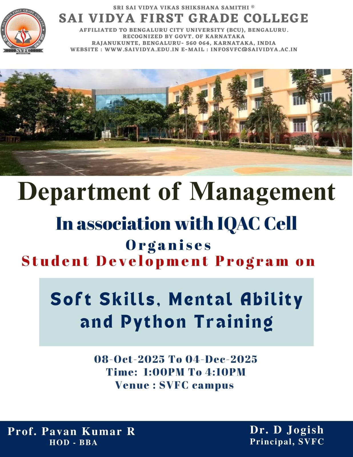 The Department of Management Organized a Student Development Program on Soft Skills, Mental Ability and Python Training. The program focused on enhancing students employability and overall skill development.